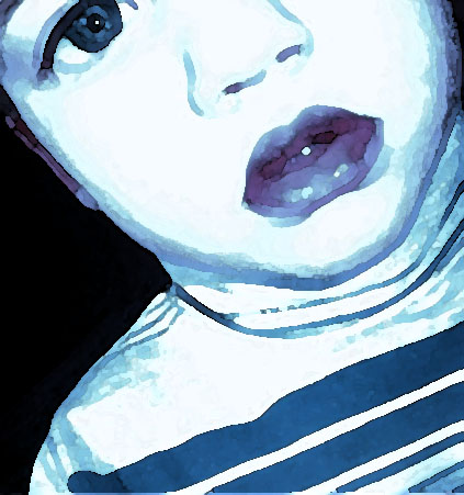 Didelės mažo vaiko lūpos.