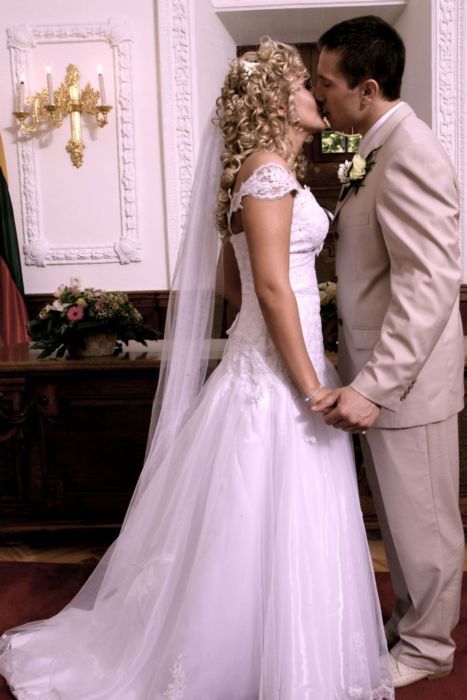labai suspausti jaunieji, noretusi daugiau erdves. be to pastatai griuva. dar noretusi, kad seselis ant jaunosios veido ne toks ryskus butu arba geriau visai nebutu. o siaip graziai buciuojasi. tiek pastabu is mano puses. ir tai tik pastabos - noresi atsizvelgsi, noresi - ne. :)