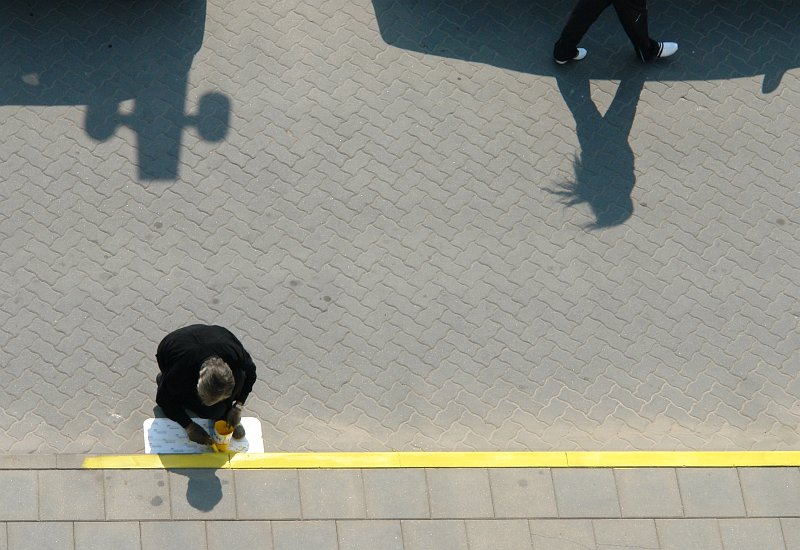 jei panele eito anoje linijos puseje, tada butu labiau gal apie atsiribojima.. o dabar jie kartu, tik tiek kad jis i ja nugara atsuktas.. imho reikejo saligatvyje palaukti kokio praeivio :)