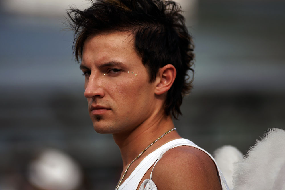 na man paciam - 1. kontrastas tarp angelo apdaru ir toks labai jau 'mielas' zvilgsnis. 2. - kokio tai metafizinio liudesio ishraishka akyse. 3. shypsena