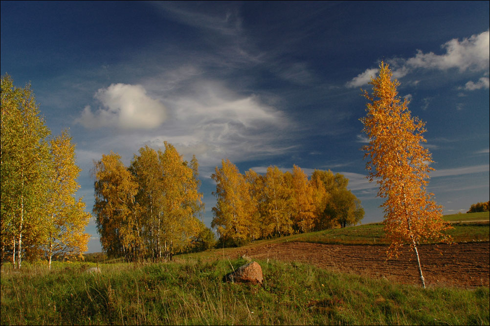 visi beržai krūvoj, o vieną vargšą paliko galulaukėj :)