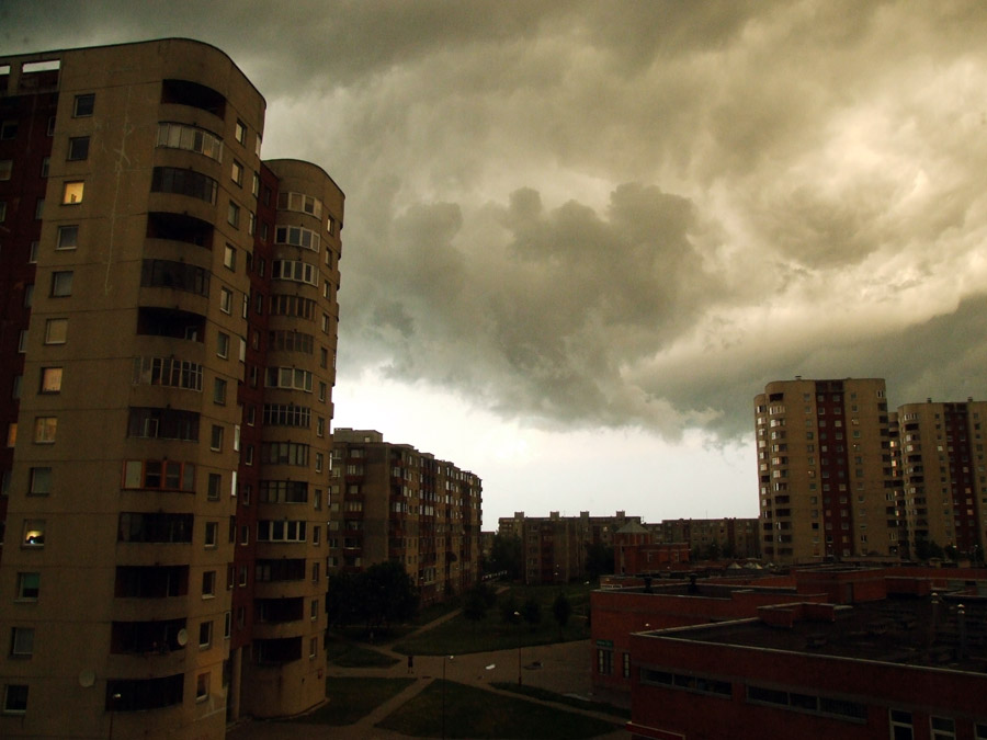 Arunai ne tau vienam, na istikruju daznai muilines iskreipia pastatu simetrija.. o tas namu tamsumas tai man gan idomiai ziurisi, manau iprastoje sviesoje jie atrodytu idomiau. na jo zaibas butu kabliukas sitos foto.. o tai taip ir nepagavai zaibo?
