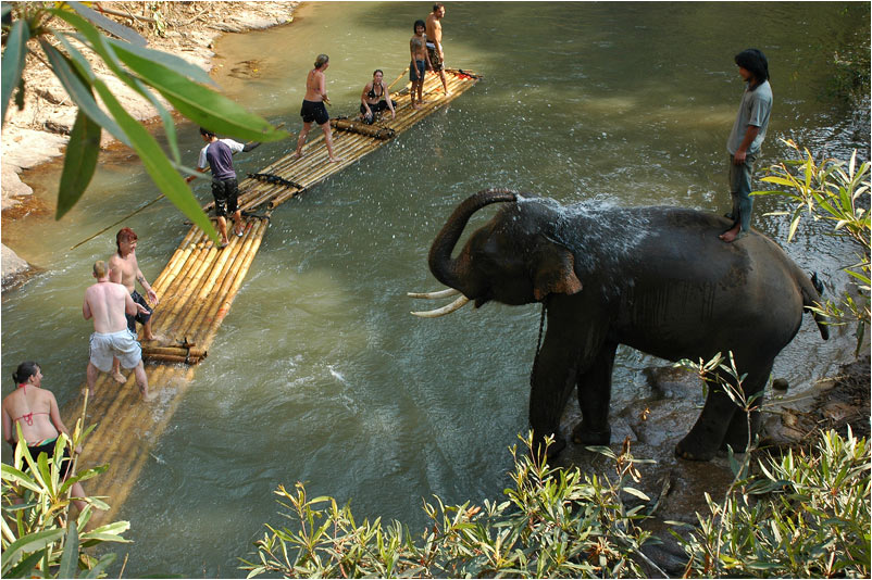 Karštas vidurdienis Tailande. Drambliams labai patinka turkštis vandenyje. Žmonėms irgi;)