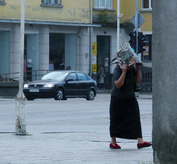 Bėgant nuo lietaus.
