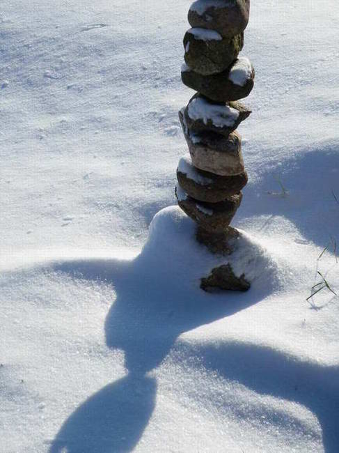 sniegas ,akmuo,truputis žolės+šešėliai.