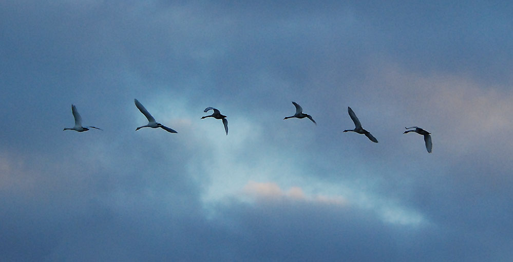 Gulbės projekcija debesyse