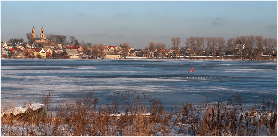 man apačia reikalinga, ji smagiai dryžuojasi su visa foto. raudonas žmogelis nėra foto esmė, jis tiesiog miestelio specifika. kaip ir tos valtys, pasislėpusios už žolių.
