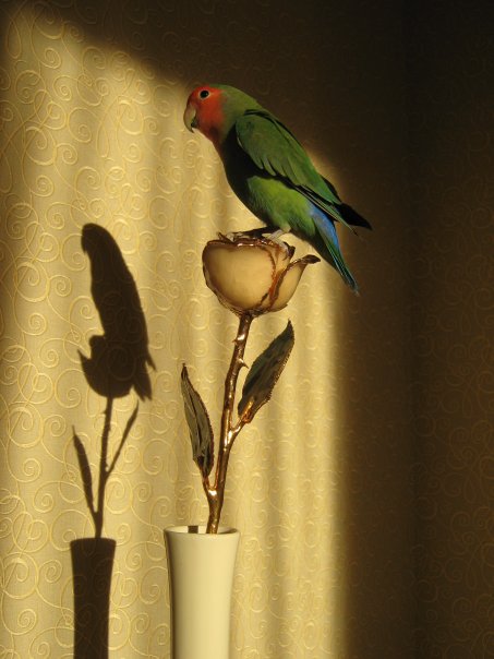 nu aš čia įjungiau savo vaizduotę taip sakydama, nes pamaniau jei ant tikros rožės papūginas nutūpt bandytų, tai nuverstų viską :DDD
