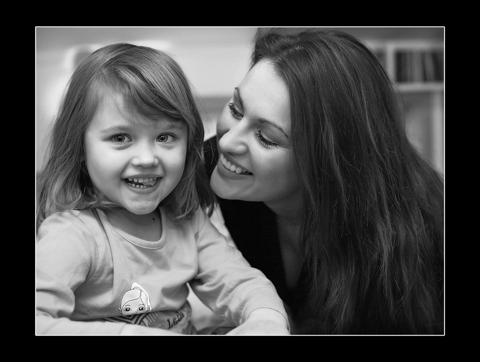 Puikus mamos ir dukros portretas, ir tikrai net tas juodas rėmas negali nei suspausti nei užspausti tos mamos meilės, kuri trykšta iš nuotraukos...