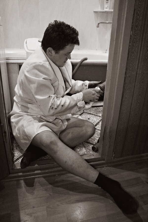 Baltas chalatas santechnikui