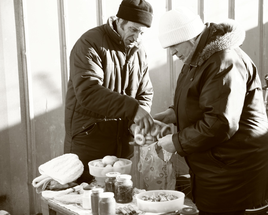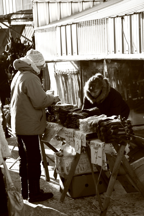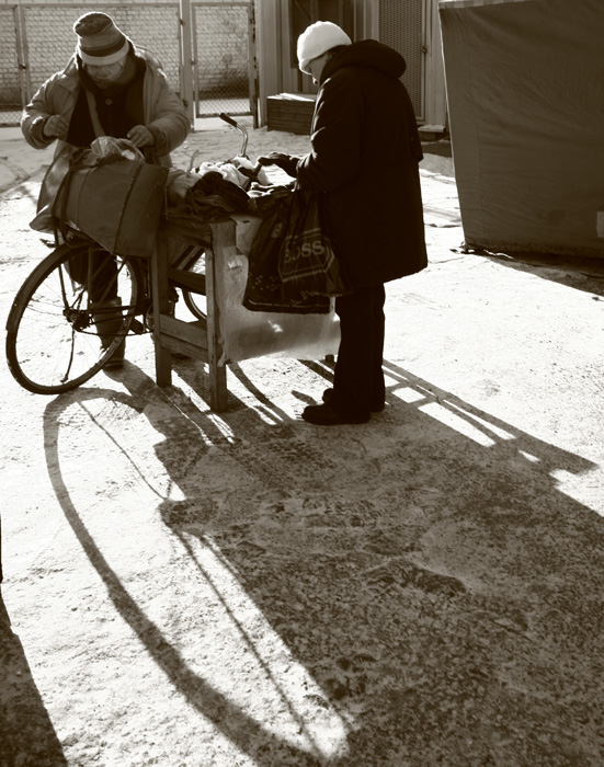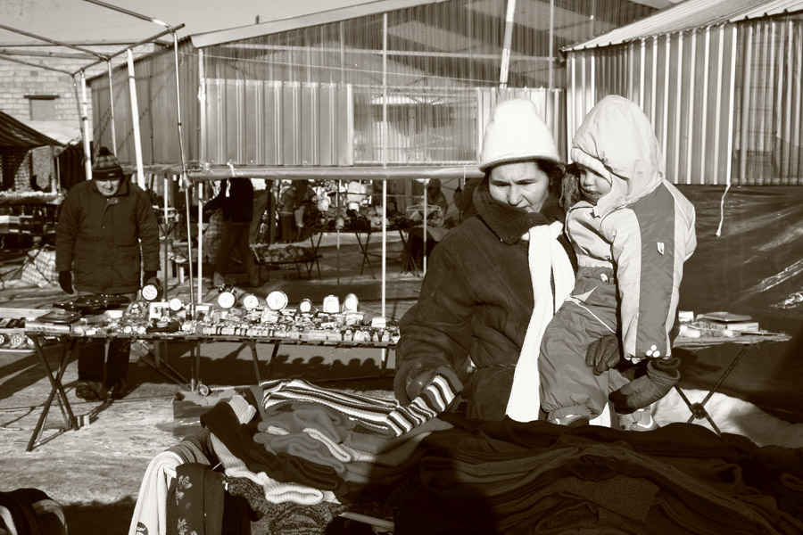 gera serija, atspindinti turgaus gyvenimo kasdienybę, gal tik sutikčiau su Sauliaus nuomone, kad reikėtų paieškoti ryškesnių tipažų ir pratęsti tą darbą, nes tai tikrai turės išliekamąją istorinę vertę... Bet pirmoji nuotrauka visdėlto man iškrenta iš konteksto su tuo dirbtinu antro plano išblukinimu, to, mano manymu nereikėtų daryti, nes reportažinis fotografavimas ir yra toks kai ne tik fiksuojamas dokumentinis įvykis, bet ir žiūrovui pateikiamas be ypatingų korekcijų, o juo labiau be papildomų manipuliacijų.