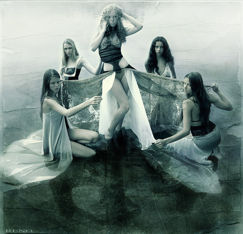 Ето не русалочки, забавные и веселые, ето скорей девочки из детдома загнаные ж лужу. ( песня Пугачевой "За копеечку, за конфеточку" ) Несомневаюсь, что автор и создавал картину а не фото, но принять ето могу только как експеримент.
