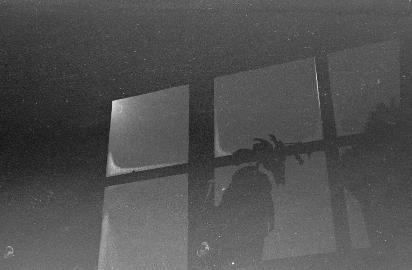 Pirma foto 1 val. išlaikymas prie f/2.8, antra foto 15 min. Caffenol C, Ilford Pan 100, Zarya.