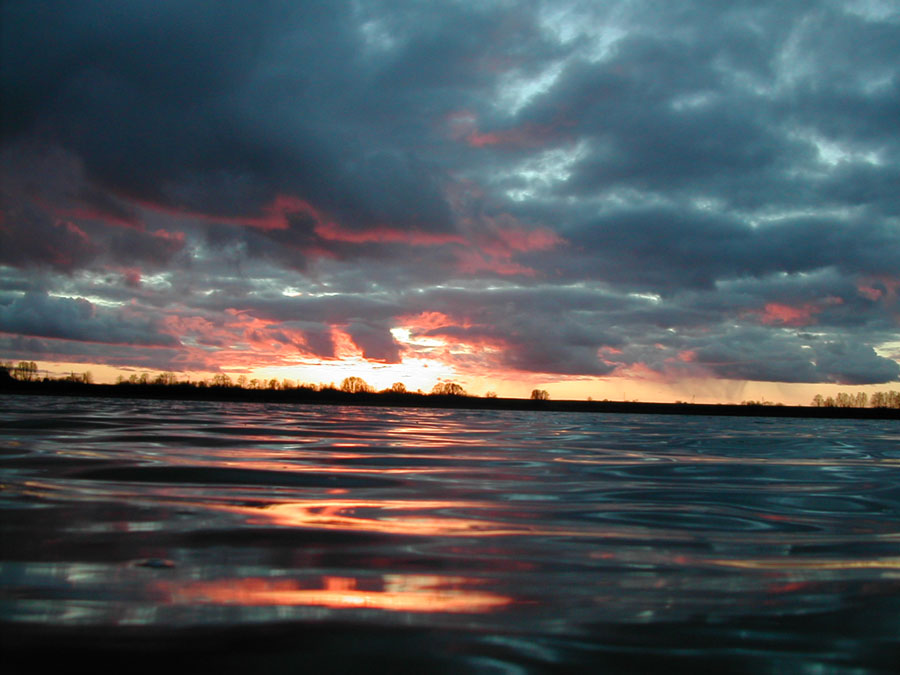 Apacioj kairej tamsi deme ir neryskus blikas. Virsuj kairej vienspalvio debesies lopas. Kairej horizonto medziai nuobodziai vienodi. Todel siekiant islaikyti formata 2:3 ir, kad horizonto linija eitu par 1/3 nuo apacios, o saule per 1/3 nuo kaires, tenka kirpt ir apacia, virsu ir kairi sona.
