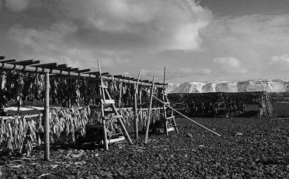 Dalis islandų žvejų išpjovę filė, galvas ir stuburus nemeta per bortą, o sukabina į tokius žaginius ir džiovina, tada presuoja i kubikus maždaug 40X60X80 cm dydžio ir konteineriais siunčia į Nigeriją. Ten žmonės šitą gėrį mala ir daro iš jo sriubą, kuri atseit turi labai daug maistingų medžiagų. Skonis būna panašus į sardinių koncervų. Sako norvegai irgi eksportuoja tokius turtus :)