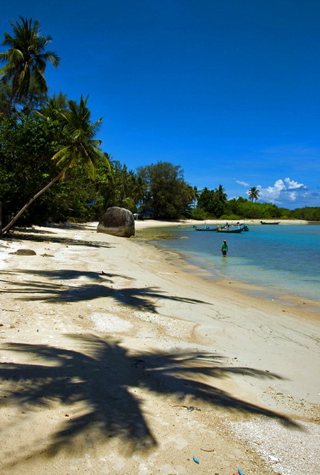 kaip graziai ant smelio krinta palmiu seseliai,