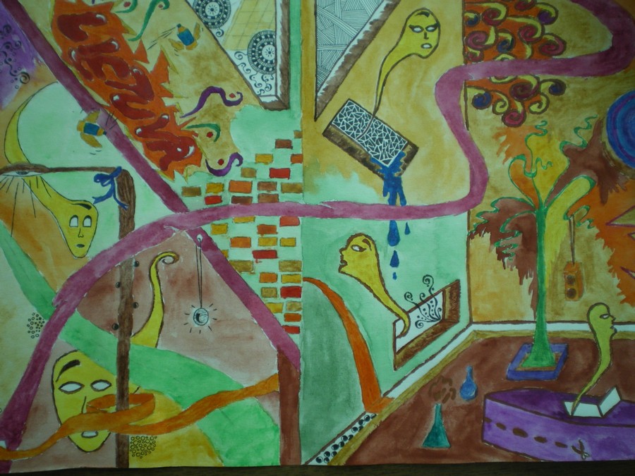 1/ sutinku su pirmu komentaru...del atlikimo, cia misri technika...tai reikia nuosekliai kas po ko...sekmes mokytis ;) siaip dar ir kompozicija...na reiktu kazka akcentuoti, kad ir kaip spalvongai noretusi viska pavaizduoti.