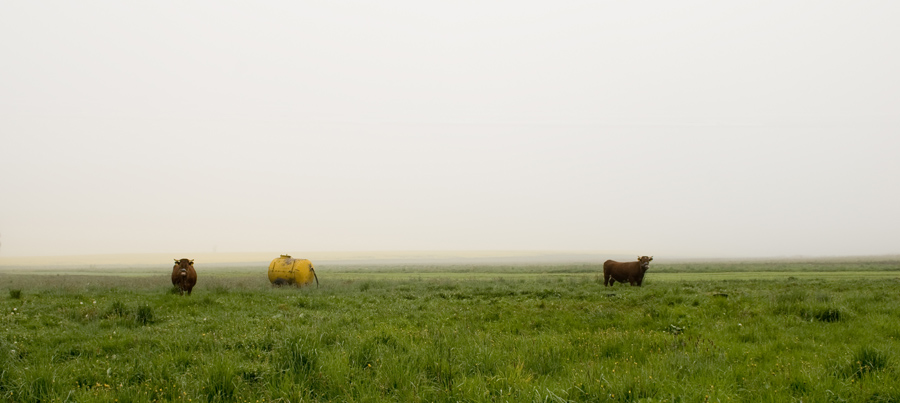 dvi karvės ir cisterna rūke