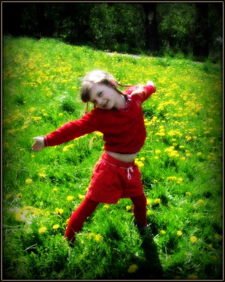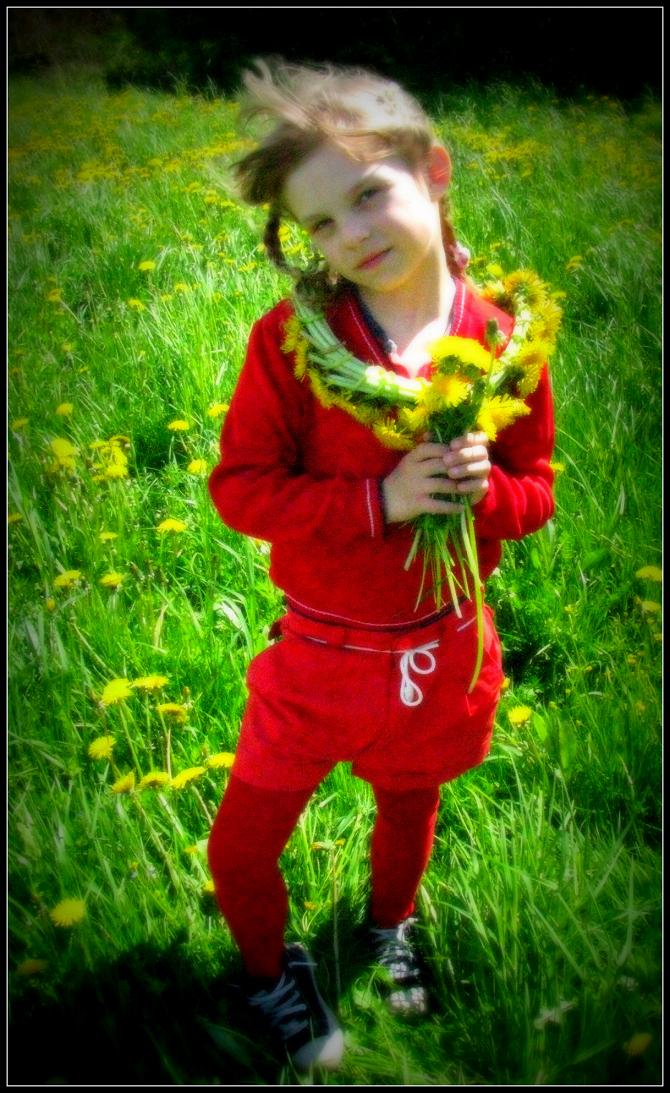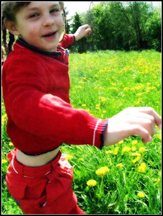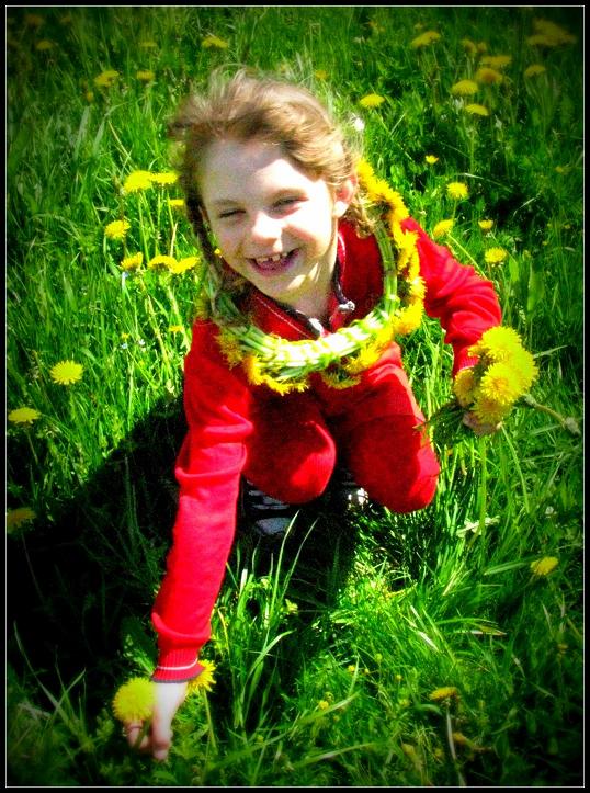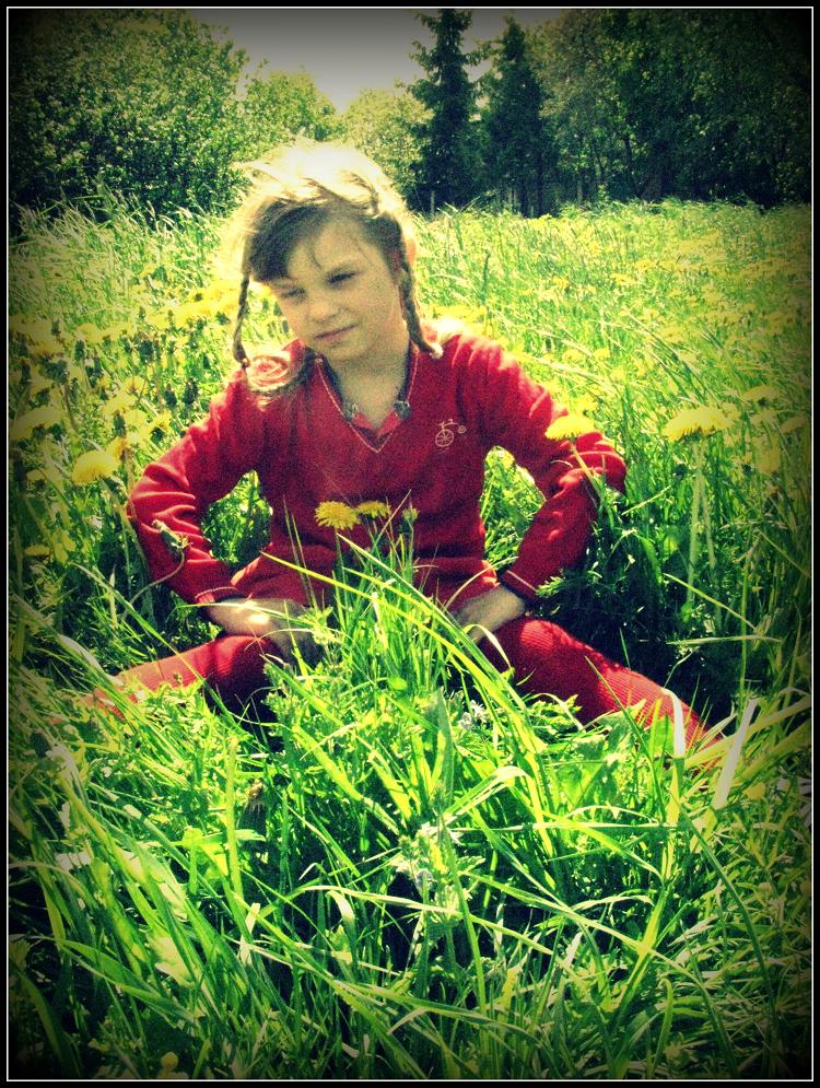 Sėdėjom su pussesere pievoj, mokiau ją pinti vaniką iš pienių :)