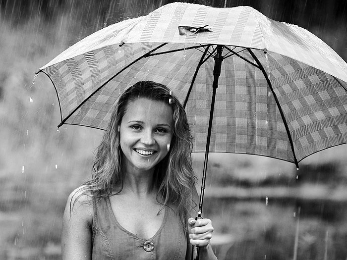 Ir lietus vietoj ir kerinti modelio sypsena.