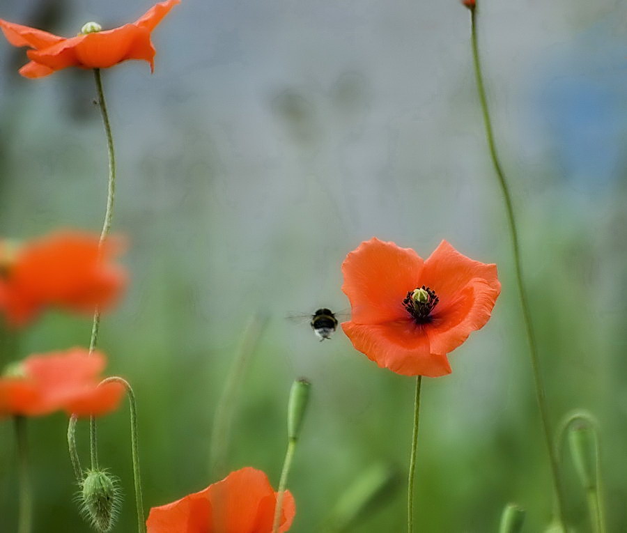 Gražios aguonos+dar bitutė įsipaišė:)