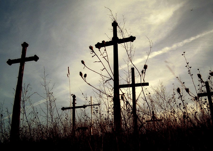 kadras, manau, būtų dar efektingesnis, jei besileidžianti saulė pieštų tų kryžių kontūrus, ar ne?