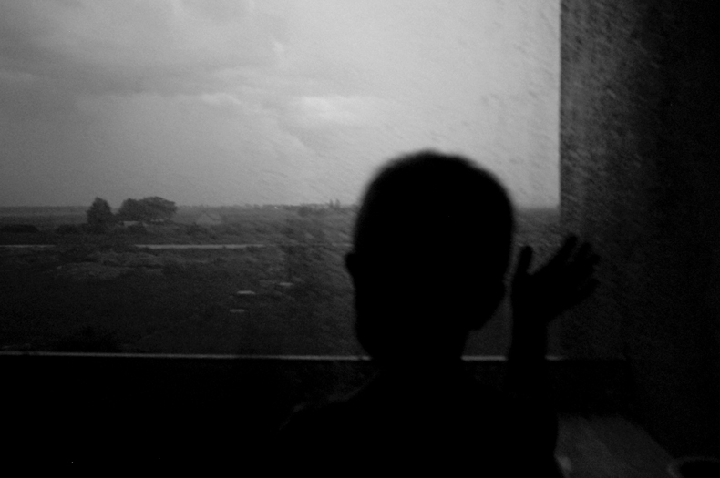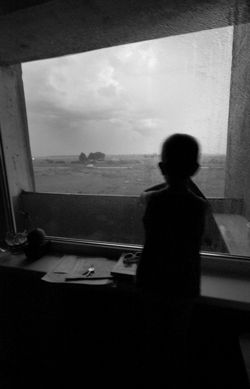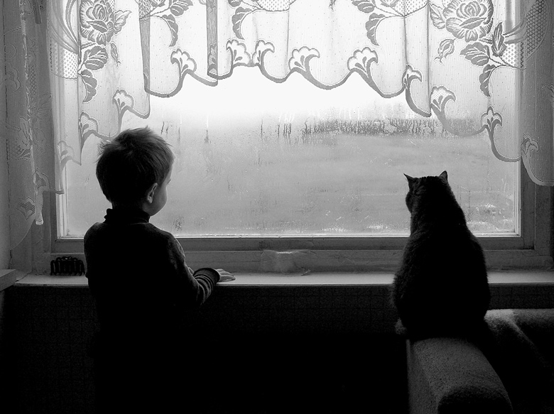 Sūnus prie lango.