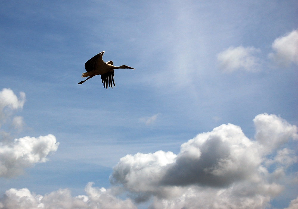 gal truputį į saulės pusę fotografavai, perdaug tamsus tas gandras, na nebent nori tik silueto. Sparno siluetas gražus:)