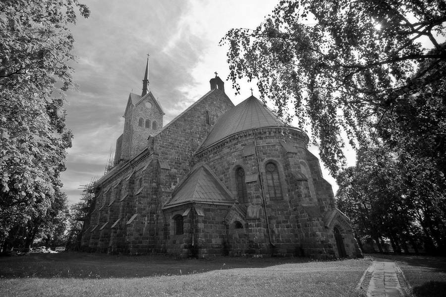 truputi pastatas atvirtęs nuo žiūrovo dėl plačiakampio iš labai arti.
