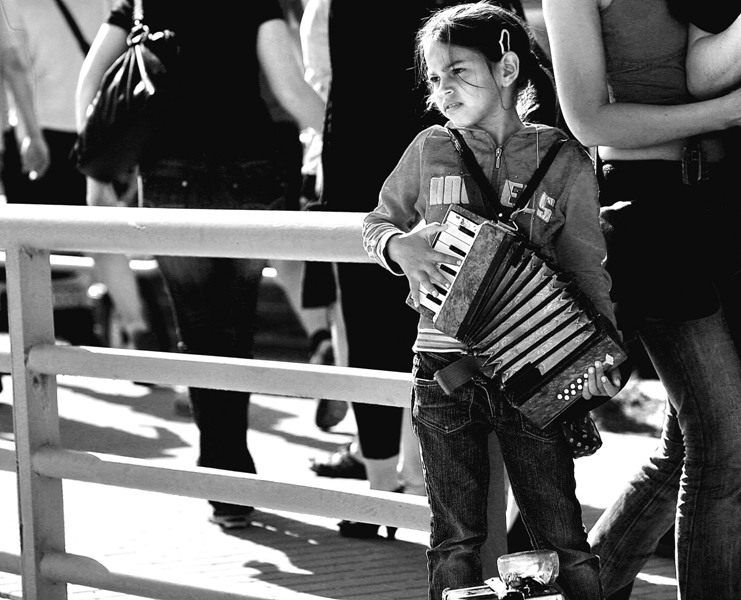 tada turėjo būt reportažas. manau - tokiai mergaitei geriau mokytis, ir rimtesnį instrumentą nupirkt, o ne žadint praeivių gailestį.