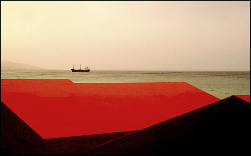 raudona cia ta skaniai ziurysi ir tas uzbreztas horizontas, laivelis. viskas, zodziu