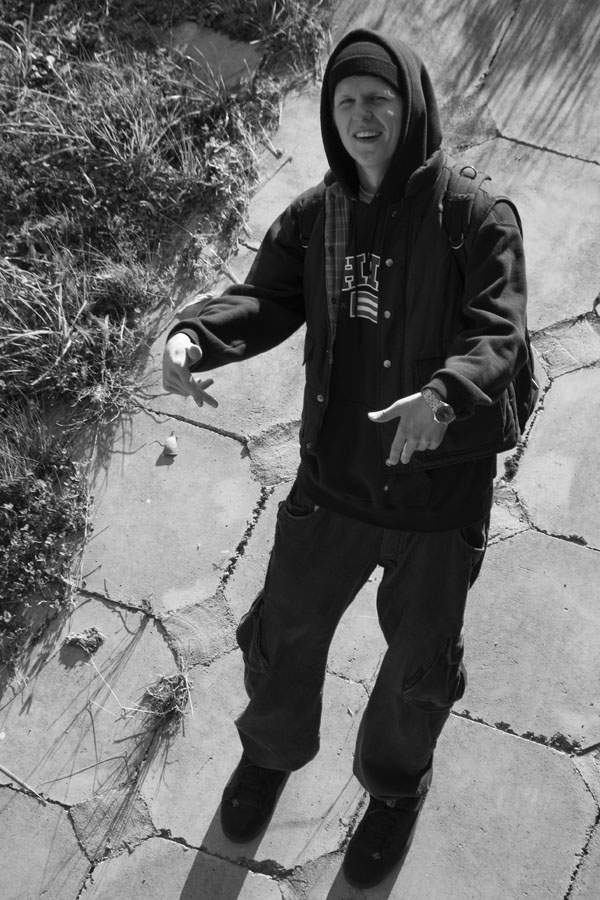 Gi neįdomi nuotrauka, nėra minties kažkokios įdomios, tiesiog nenatūraliai nufotografuota žmogaus mina, kada jis vaidina reperį ir padaryta bw..