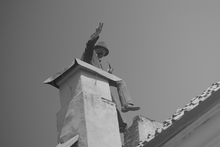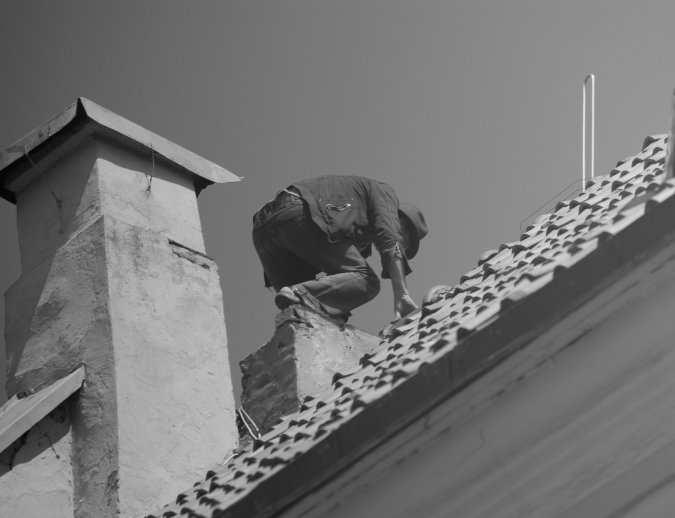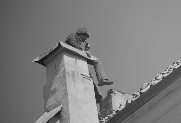 pirma ant zemes. pirma ant stogo
