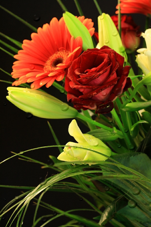 nufotkink vieną gėlę iš šono švelniai apšviestą, apipurkštą vandeniu juodame fone stambiai, ryškiai ir bus vaizdelis :) nors viskas yra skonio reikalas..