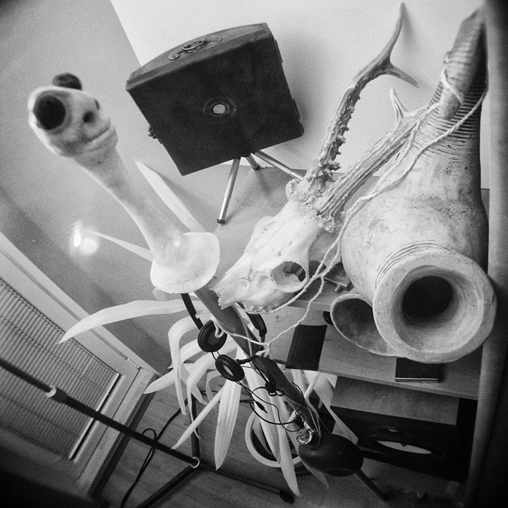 dėžutės apačia nupjauta, palikta tik siaura dalis - kad pinholo kampas būtų platesnis. į vidų (dangtis lenktas, tai kampas dar platesnis) galima dėt popierių 13x18cm ar negatyvą 4x5 (colių). po pirmo fotkinimo dar geltoną filtriuką, likusį nuo agfos, uždėjau, kad popieriaus kontrastą pamažint.