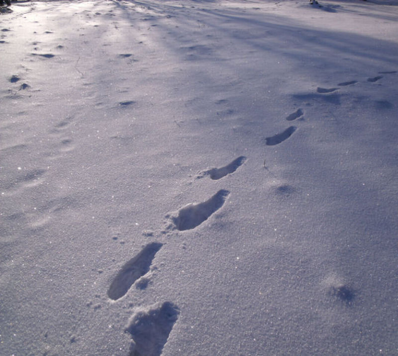 Per sniegą gilios pėdos bėga.