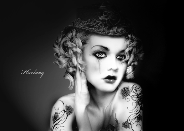 yra klaidų: su tatuiruotėm galėjai geriau padirbėti(nes dėš. pusėj,prie kaklo,per daug nutrynei su trintuku,labai krinta į akis),veido deš.pusė per daug nušviesinta,brush'as lietė lūpas,nosį,todėl tos detalės išblanko ir deš. petys neproporcingai mažas atrodo ir tt.tiesiog reikėjo kruopščiau padirbėti :)