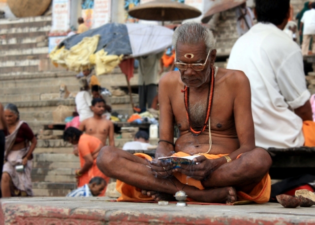 Profesionalus žynys, aukščiausio luomo atstovas Indijoje. Varanasis, Gango pakrantė.