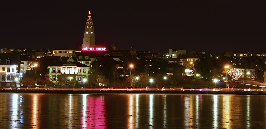 naktine foto.Reykjavik