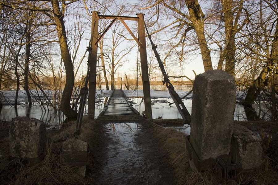 Na, matai, kadangi pats negyveni tose vietose, ir niekas su jomis nesieja, tai atrodo, kad tos nuotraukos šalintinos, bet jei žinotum, kad tas tiltas paprastai per gero vyro ūgį virš vandens kabo, ir šiemet jo likimas ypatingai priklausė nuo potvynio masto, suteikiau šioms nuotraukoms ypatingą svarbą.