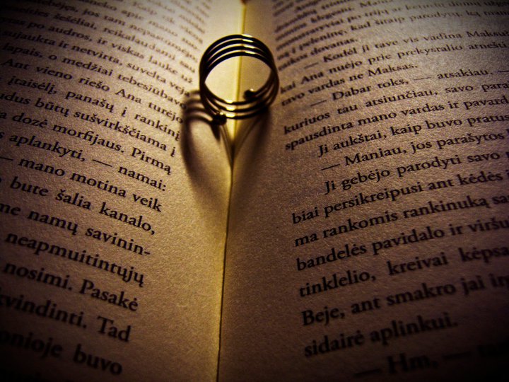 pateikimas matytas gal jau......n kartu, ir dažniausiai žiedas būna atverstoj biblijoje :) o čia knygoje kurioje rašoma kaip kažkas susileidžia morfijaus :) bet už pateikimą uogytę