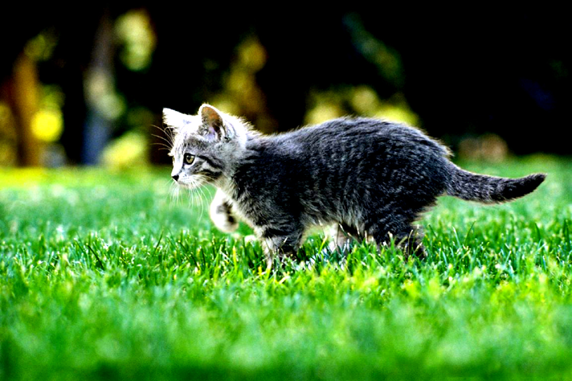 Katiniukas bega per laukus.