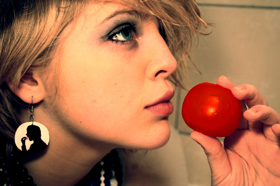 nepatiko nuotraukos kokybė( pageltonavimai ant veido dėmėmis,pajuodę paakiai,pomidoro spalva),bet už idėją +
