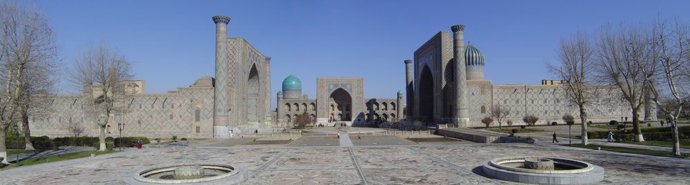 Samarkandas (Uzbekistanas), Registano aikštė. Ulugbeko medresė (1417-1420) , Tilia Kori mečetė (1647-1660) ir Šer-dor medresė (1619-1636) .