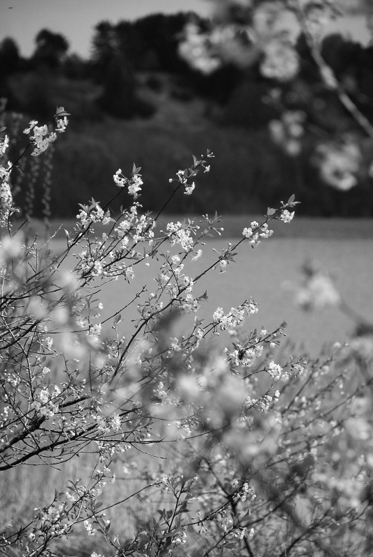 graziai per juoda ir balta perteiktos pavasario spalvos