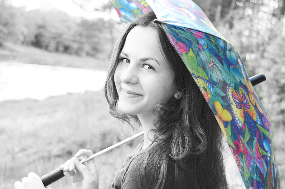 jau geriau būtum skėtį nespalvotą darius, o aplinką spalvoj palikus (-: