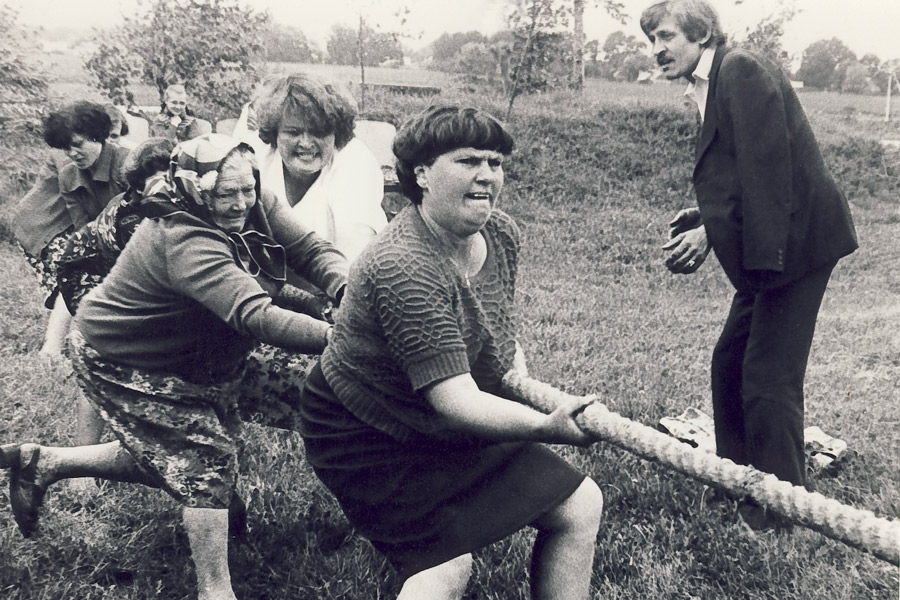 Yra tokia viena mergina kuri galėtu atitraukt vyrukus nuo bambaliuko, kaip tik ji ir virvės netraukia, o stovi pačiam pačiam gale :)
