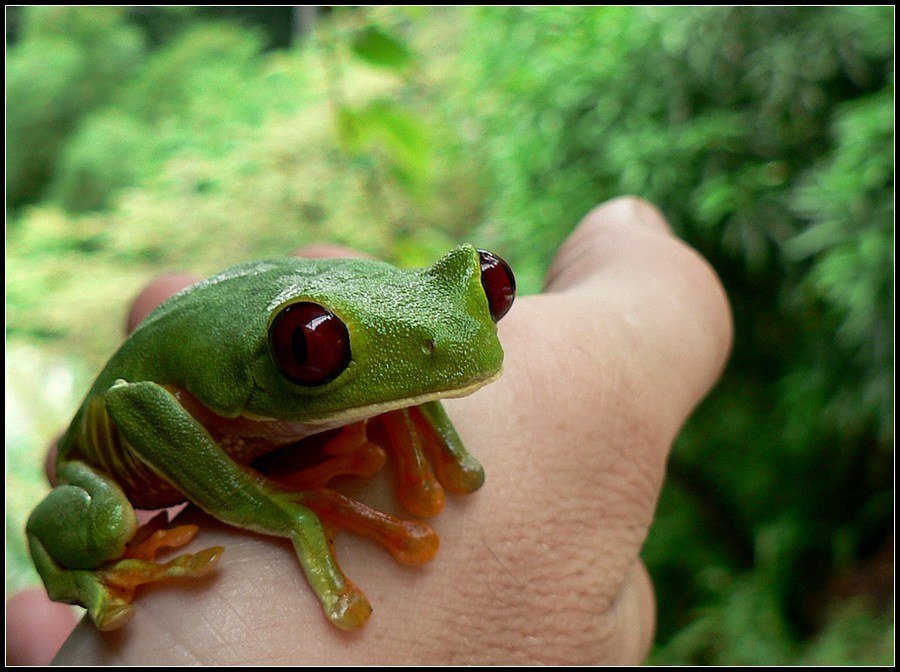 Red eye tree frog. Jos dažniausiai tupi po lapų apačia. Šitą radom ant sienos, kai grįžom iš canopy tour :)