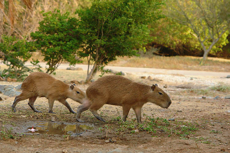 1. Kazkada keli gyvunai buvo importuoti i Margaritos sala, nors siaip Margaritoj jie nepaplite, per sausa jiems ten. Tai ta seimyna sekmingai adaptavosi, vis dideja, didele kudra sau turi. Ir upeliuksti. Tik ten sargybinis pastatytas, kuris, matyt, akis ir pakausy turi, niekaip nepraslinksi nepastebetas. Bet...uz maza kysi mielai i ju teritorija nuveda, kai sefai nemato. Mat, toj teritorijoj dar ir sefas sedi, saugo, kad zmogenai tu vandens kiauliu netrukdytu. Gerai, kad saugo...