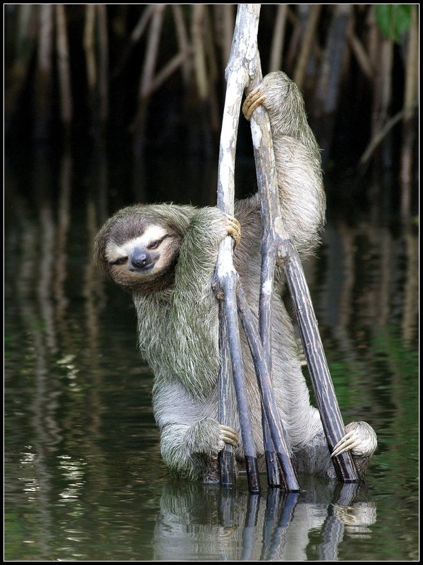 Beje, kiek zinau, tinginiai specialiai lenda i vandeni, kad kailiuke vandens zoliu prisirinktu. Tokiu budu jie pasidaro maziau pastebimi tarp zalumos medziuose.